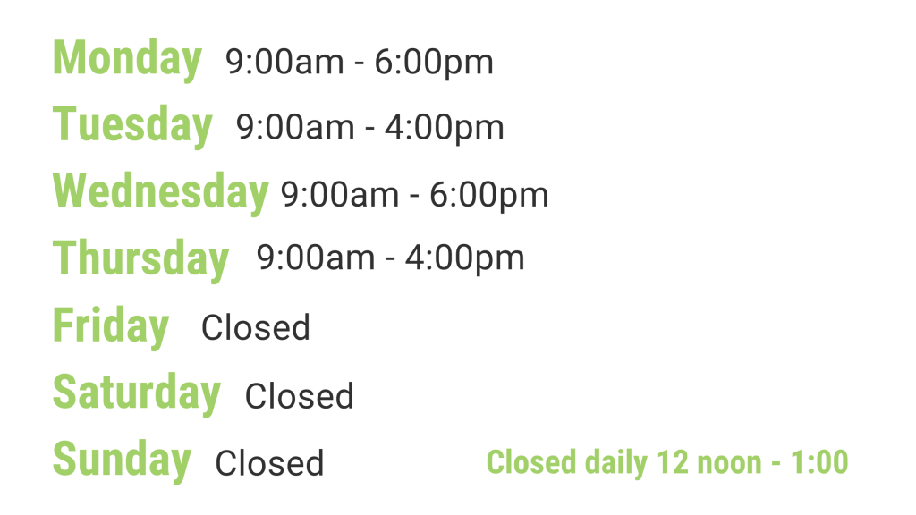 CLOSED DAILY 12 PM – 1 PM